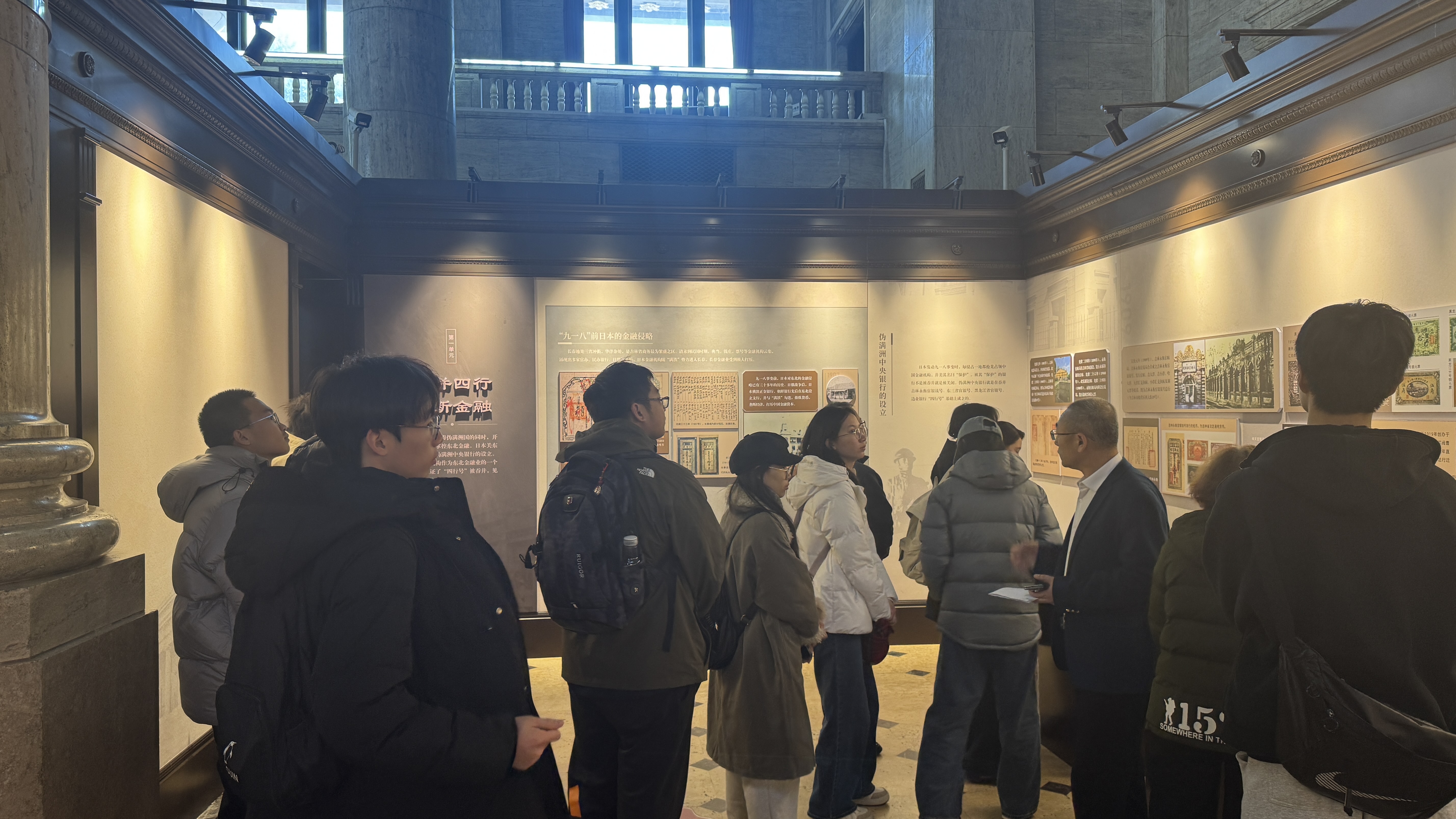 工作人员为大家讲述了这座银行旧址历经伪满时期、解放战争时期的风雨历程。同学们认真聆听,不时驻足凝视,通过一件件历史实物、一幅幅珍贵图片和详实的文字资料,系统了解了伪满洲国中央银行的设立背景、职能运作及其作为经济掠夺工具的本质,对“金融是国家重要的核心竞争力”、“金融制度是经济社会发展中重要的基础性制度”等论断有了更为直观和深刻的历史认知。