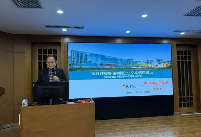 报告伊始,李仲飞教授对金融科技发展对投资者的影响这一问题展开讲解。李仲飞教授从提升投资者能力、降低投资者对上市企业披露信息的分析成本视角出发,探讨抑制文本信息操纵行为。随后,李仲飞教授通过构建同时考虑投资者注意力限制、信号组合以及上市公司信息披露的理论模型展开分析,模型分析结果表明金融科技能够降低会计信息分析成本。最后,李仲飞教授及其研究合作者通过大语言模型构造异常语调指标对理论模型进行实证检验。