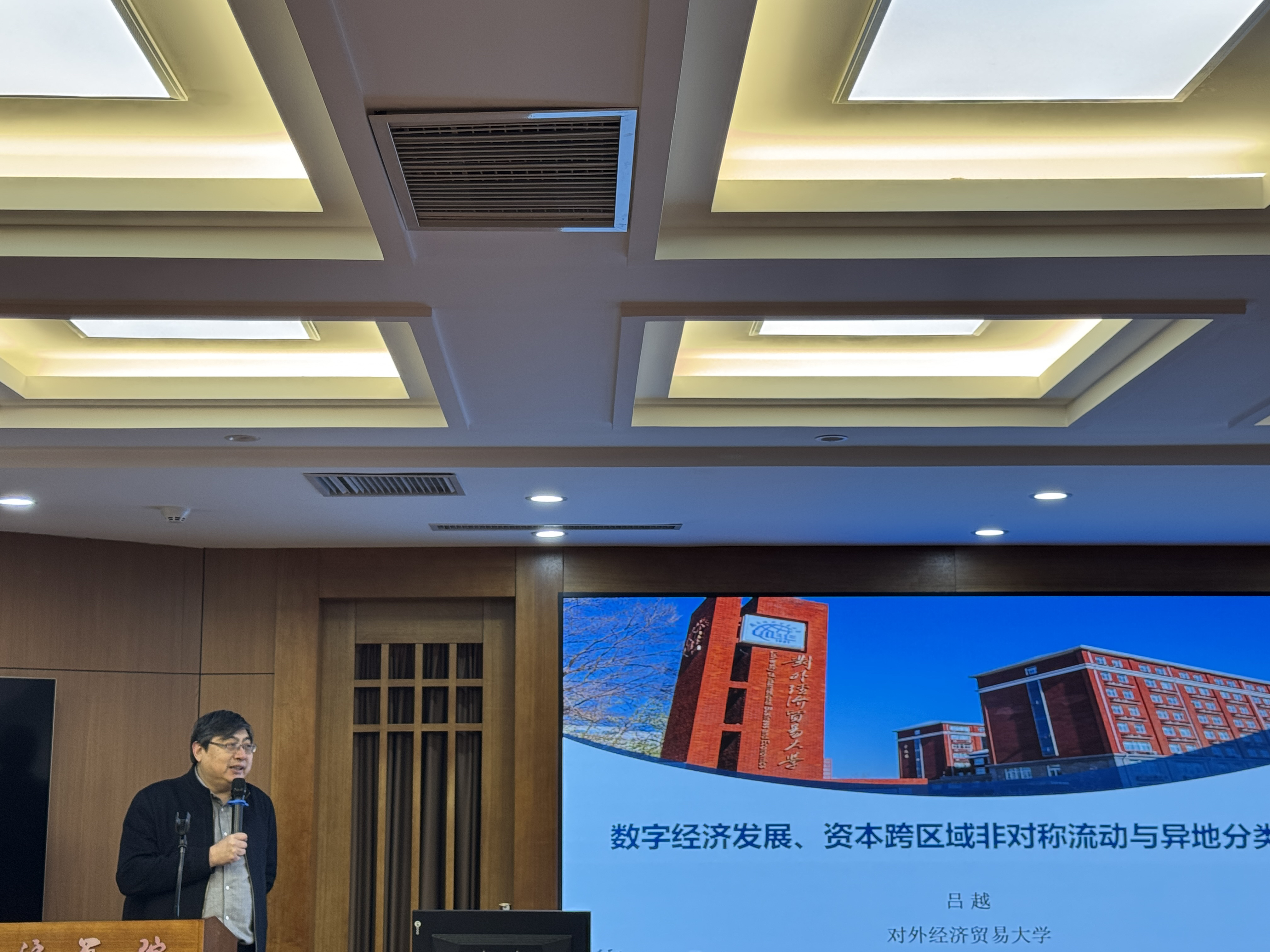 12月23日,对外经济贸易大学全球创新与治理研究院(教育部战略研究基地)执行院长、国家级人才计划领军人才吕越教授应邀来我校作题为“数字经济发展、资本跨区域非对称流动与异地分类投资”的学术报告。报告由经济学院院长丁一兵教授主持,丁一兵院长代表学院热烈欢迎吕越教授来吉林大学开展学术交流,并介绍吕越教授长期致力于数字经济、国际投资与区域经济一体化研究,成果发表于国内外重要期刊,并担任《国际贸易问题》等权威期刊编委,其研究兼具理论创新与政策价值。学院部分青年教师、研究生近百人参加了此次讲座。