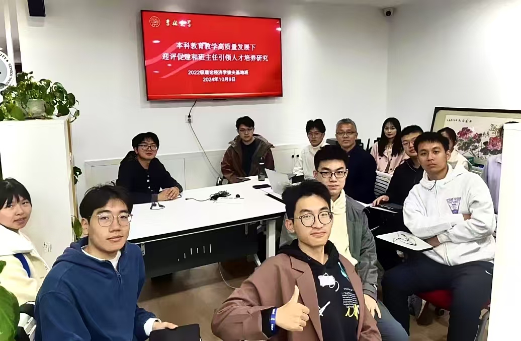 2024年10月9日上午,2022级理论经济学拔尖基地班(匡亚明实验班)班主任邵学峰教授为拔尖基地班全体同学召开本科教育教学高质量发展下迎评促建引领人才培养主题班会。