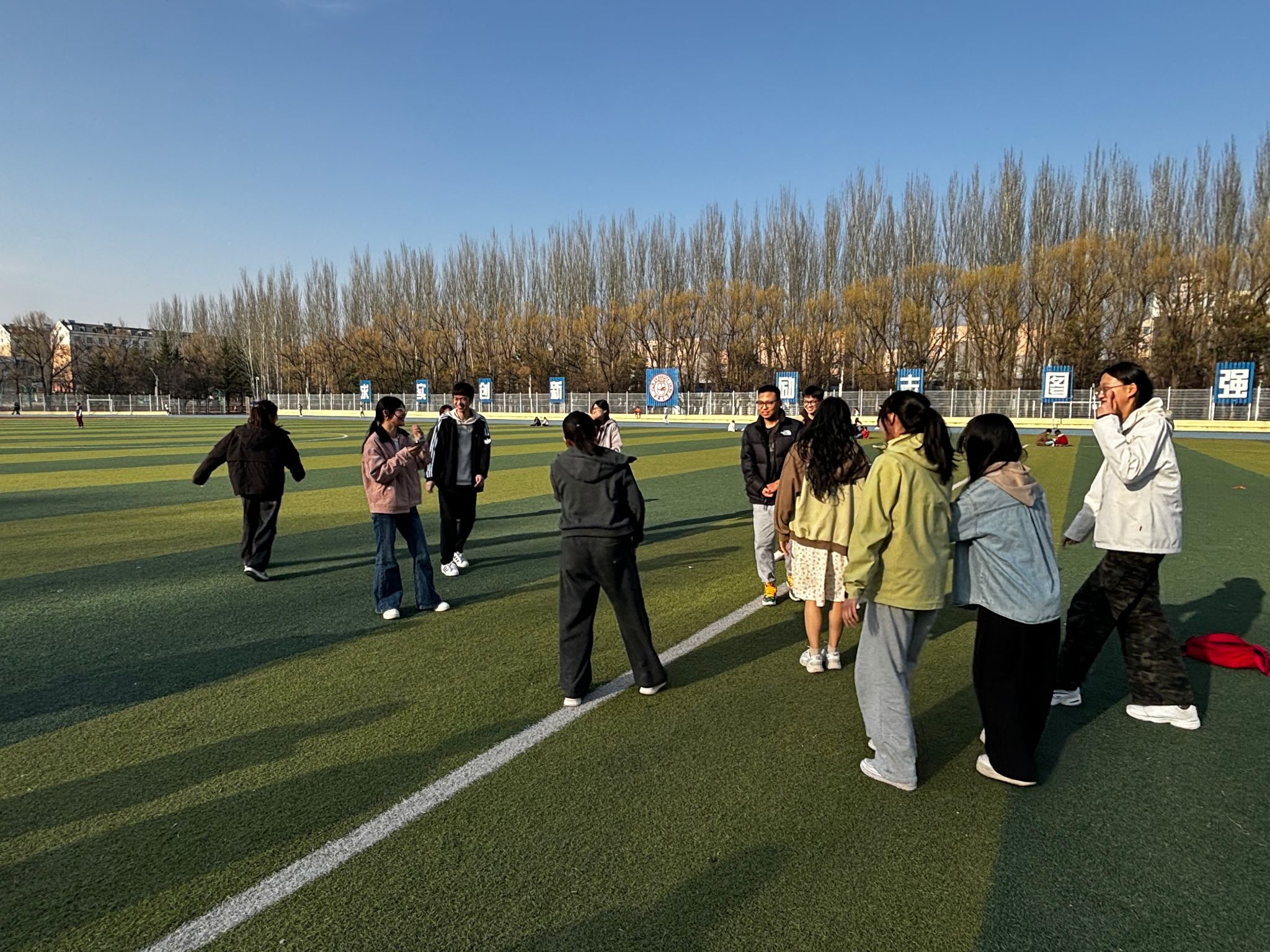 为加强班级文化建设,打破同学间交流壁垒,增强班级凝聚力与集体归属感,2026年4月15日下午,2024级经济1班以“凝心聚力,青春同行”为主题,在操场开展班级团建活动。本次活动由团支书孙溪曼、班长龚丹精心策划组织,全体同学参与其中,在90分钟的欢乐互动中,以游戏为纽带、以协作促交流,充分展现了班级团结奋进、朝气蓬勃的青春风貌。