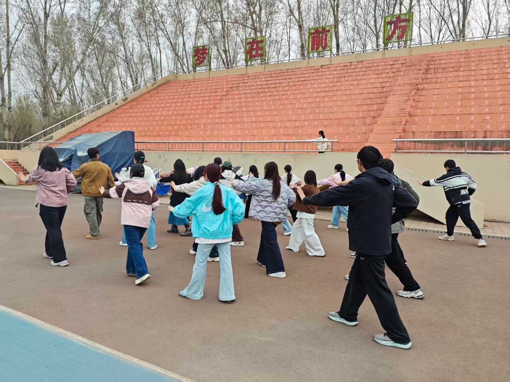 为助力同学们熟练掌握太极拳动作要领、高效备战太极拳期末考试,响应学院阳光体育活动月号召,丰富班级体育文化生活、增强班级凝聚力,4月16日,2024级财政1班开展“太极补给站”主题活动,班级同学全员参与、交流练习。