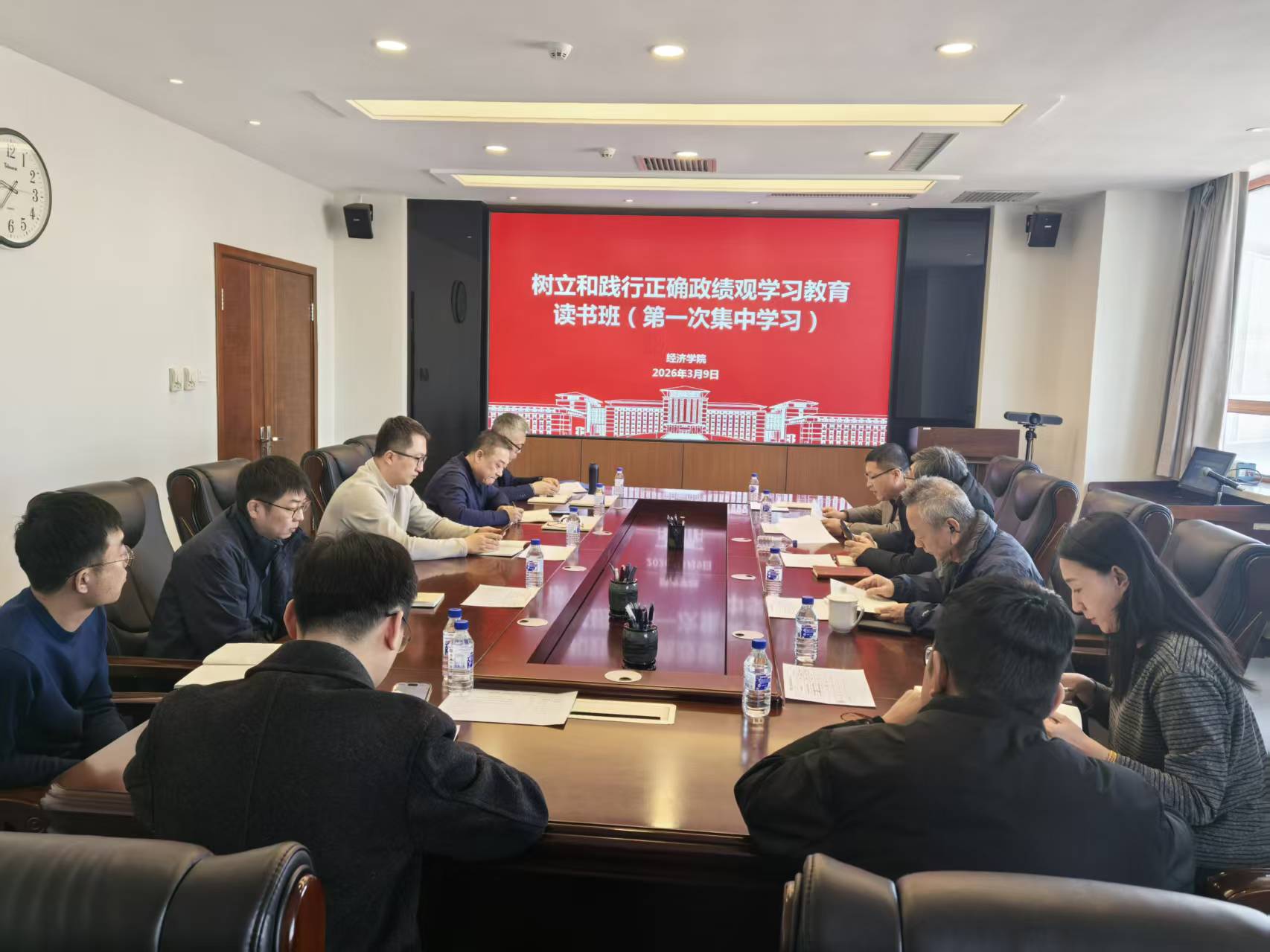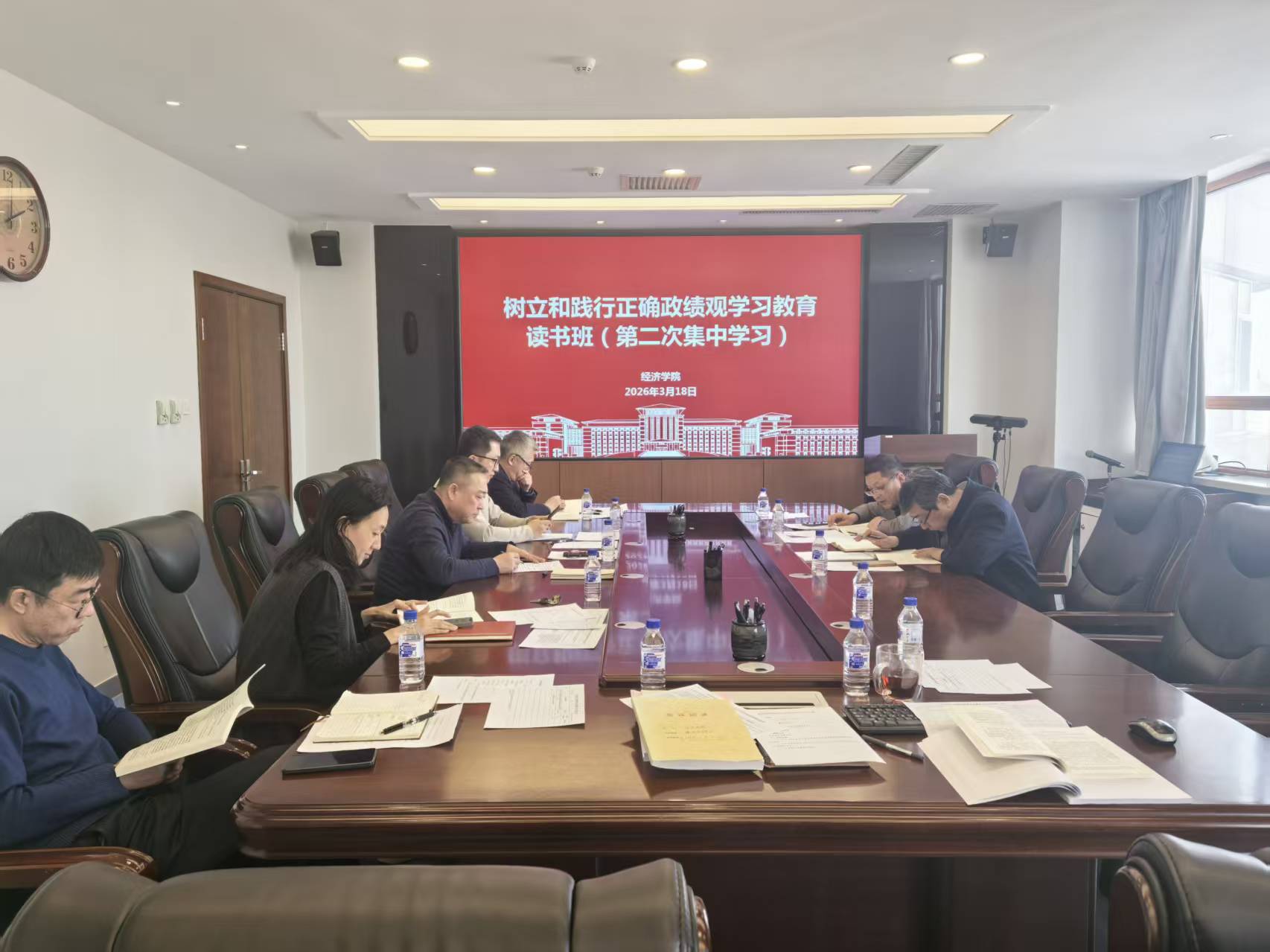 按照学校党委的统一部署,学院制定了《经济学院开展树立和践行正确政绩观学习教育实施方案》,并于3月9日成立树立和践行正确政绩观学习教育读书班,截至目前已开展读书班集中学习3次。