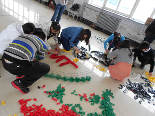 比赛开始后,各队伍有一个半小时的时间来自由拼出想要的图案。此次活动有两名来自新文化报社的记者全程跟踪报道,并且从每个社团各出一名成员作为评委,最后在多米诺骨牌成功推进的前提下,将根据每队的图案复杂程度及美观性作为评断标准,评出最优获胜队伍。每个队伍的队员都非常仔细认真的摆放着精巧的骨牌,虽然在摆放过程中有的队伍几次都不小心把摆好的骨牌碰倒,但是在各个队伍的成员高度的耐心与默契的合作下图案最终成型。时间迅速流逝,活动如火如荼的进行着,海化社的“兔斯基”和“长城”、求职联盟的“春暖花开”、MT协会的“雄鹰”、成功学协会的“大爱无疆,祈福雅安”、荒岛诗社的“诗韵”一一展现在人们眼前,最后不管是哪个图案在成功铺开的时候,都让我们享受到了一场视觉的盛宴。