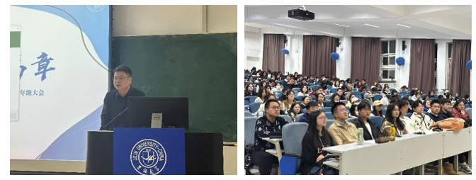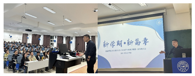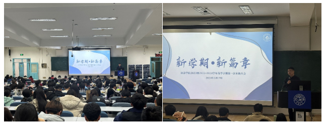 新学期,新篇章。经济学院2023级2023-2024学年春季学期第一次年级大会于3月19日晚在第三教学楼第四阶梯教室顺利召开。本次大会由学院党委副书记赵勇、2023级辅导员邹雨彤共同主持,2023级全体学生参与。