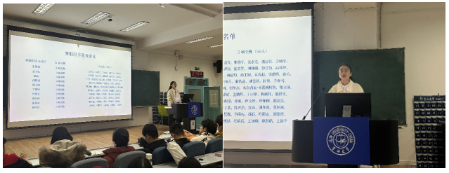大会第二部分由辅导员邹雨彤讲话。邹雨彤老师着重强调了同学们的学习情况,对如何珍惜、利用好985大学的平台资源作出指示,对寝室安全、心理健康、夜晚归寝等进行了日常提醒,最后对在寒假打卡活动中表现优异的阿里米热·亚森江等61名同学进行公开表扬和发放礼品奖励。