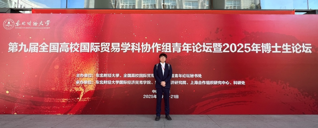 2025年9月20日至21日由东北财经大学、全国高校国际贸易学科协作组青年论坛秘书处主办,东北财经大学国际经济贸易学院、东北亚经济研究院、上海合作组织研究中心、科研处承办的“第九届全国高校国际贸易学科协作组青年论坛暨2025年博士生论坛”在东北财经大学召开。吉林大学博士研究生康泽群前往大连参加了本次学术会议。
