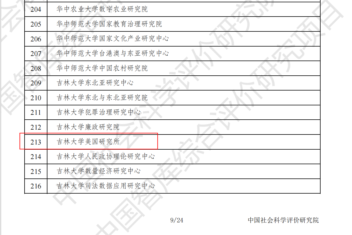 近日,中国社会科学评价研究院公布了《中国智库综合评价研究项目2025年AMI智库入库名单》,吉林大学美国研究所成功入选“中国智库综合评价研究项目(2025)AMI智库”。
